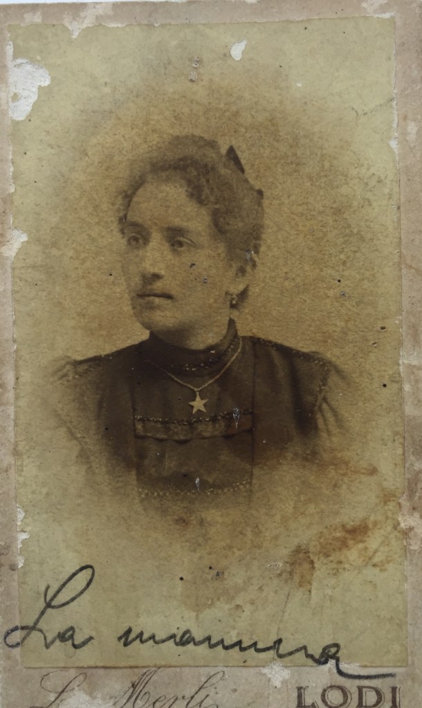 Ritratto in studio (Merli, di Lodi) di Antonietta Salvarani, da giovane. Indossa una collana a forma di stella.