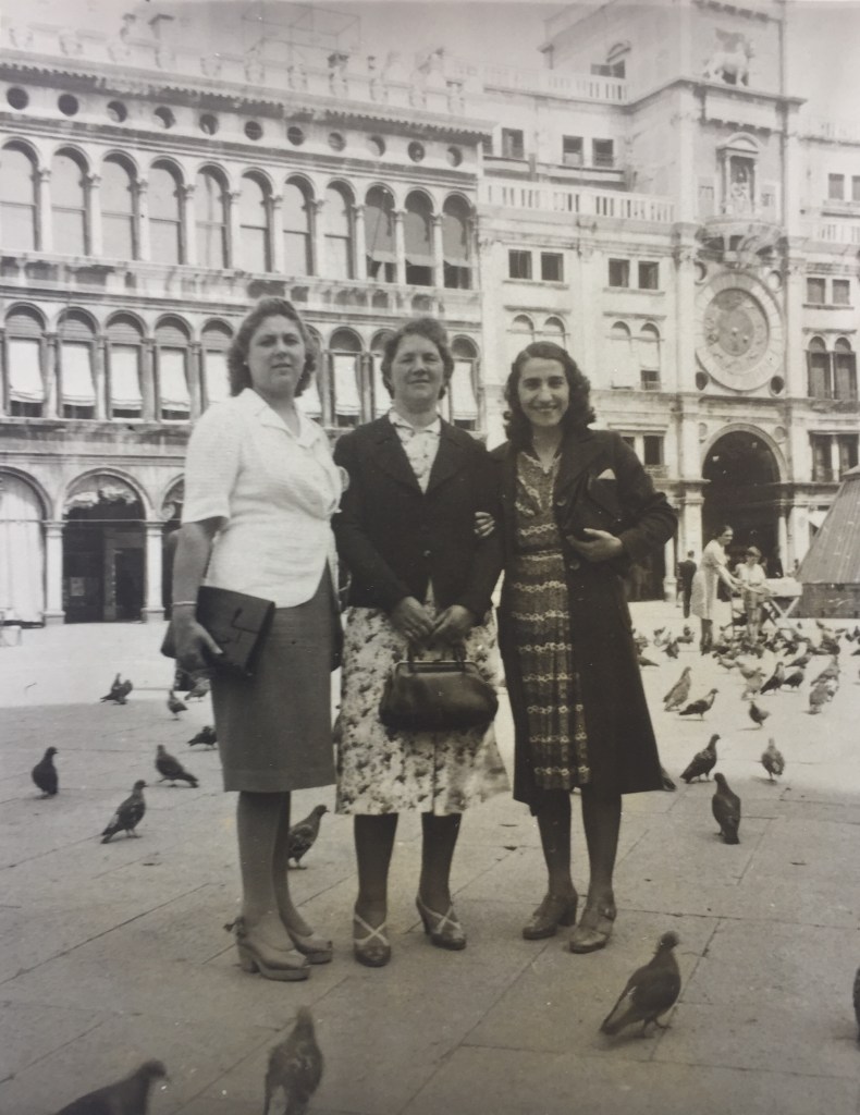 Marta Boccalini (3°) con le due sorelle bolognesi sue amiche, in Piazza San Marco (Venezia).