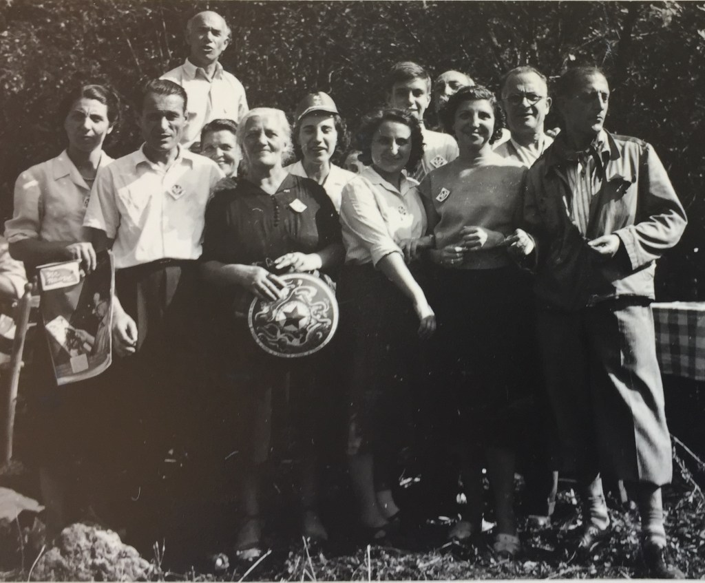 Foto di gruppo alla Festa dell’Unità di Monza, nel 1949. Come ricordato da Libero Traversa nel suo Comunisti a Milano (Milano, Teti, 2002, p. 26), la Festa provinciale de l’Unità si tenne dal 1947 al 1952 al Parco di Monza.