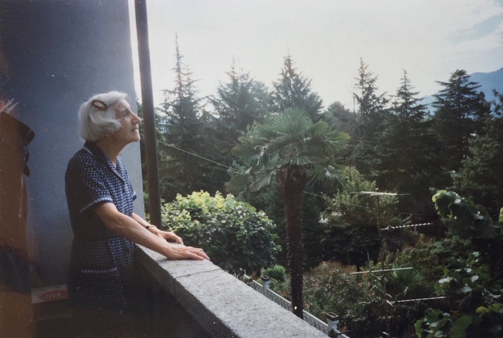 Un’anziana Marta Boccalini guarda l’orizzonte dal balcone della casa di villeggiatura di Cannero.