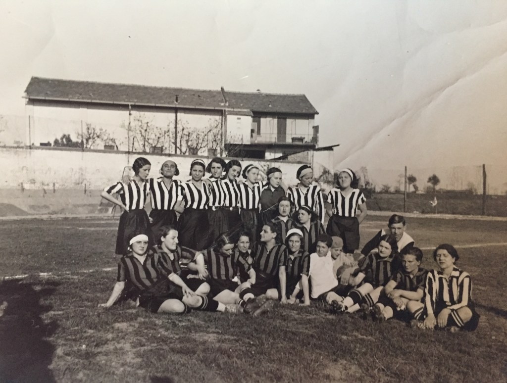Foto di gruppo per le due squadre del GFC, le bianconere e le nerazzurre. Il 24 maggio 1933 venne pubblicata su Il Calcio Illustrato: