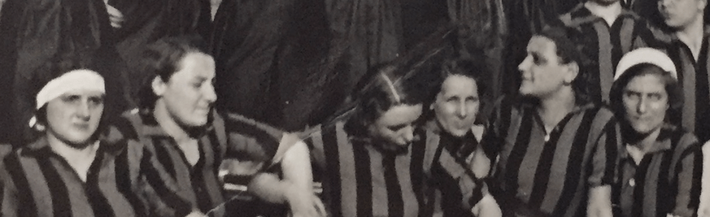 Seduti, da sinistra (seconda metà): Dell’Era (portiere in maglia bianca); Bandini (portiere con berretto); Losanna Strigaro (maglia nerazzurra); Elena Cappella (maglia nerazzurra); Jole Mantoan (maglia bianconera). Dietro le ultime tre, un ragazzo (forse il terzo portiere ragazzino, Bandini?).