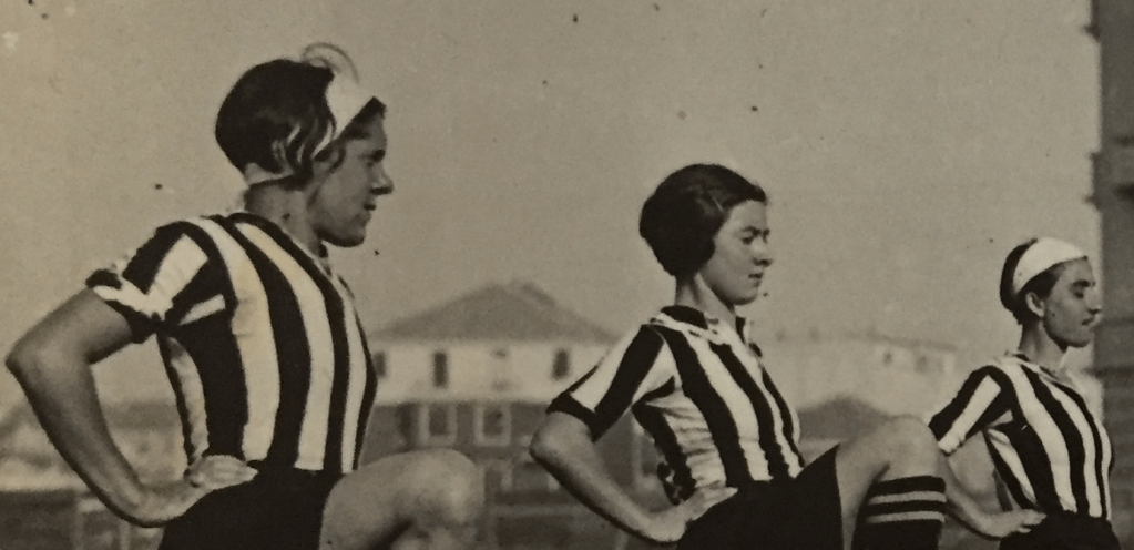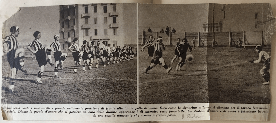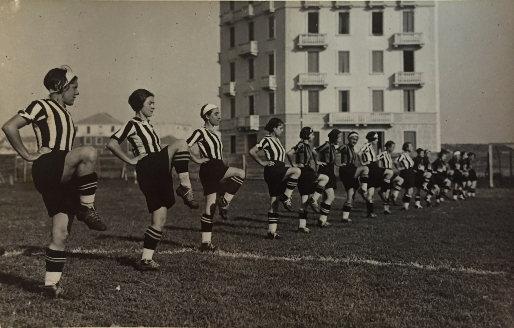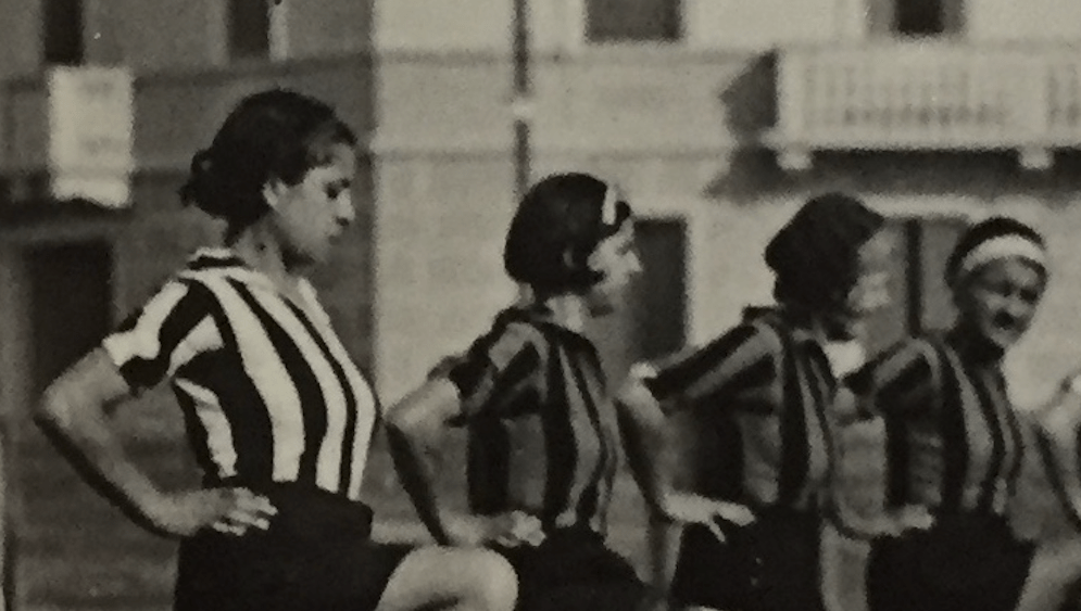 Da sinistra: Ninì Zanetti (fascia bianca, maglia bianconera); ? (maglia bianconera); forse Marta Boccalini (fascia bianca).