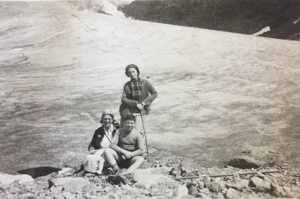 In posa davanti al ghiacciaio del Careser: Francesca Boccalini (in piedi), Giovanna Boccalini Barcellona e Giacomo Barcellona.