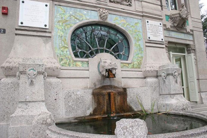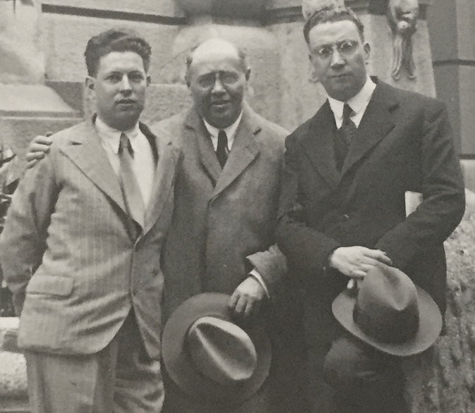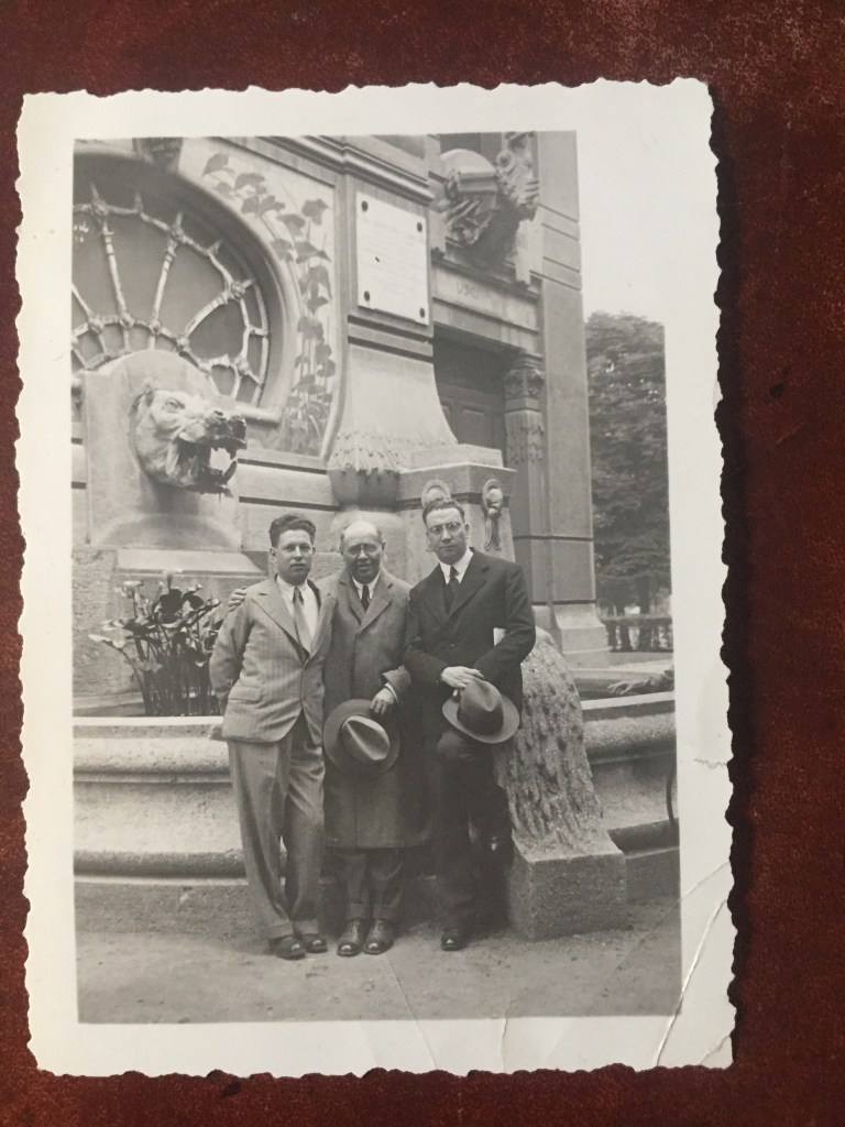 Giuseppe Barcellona con due amici (il secondo probabilmente padre del terzo) di fronte alla fontana con la testa d’ippopotamo dell’Acquario di Milano.