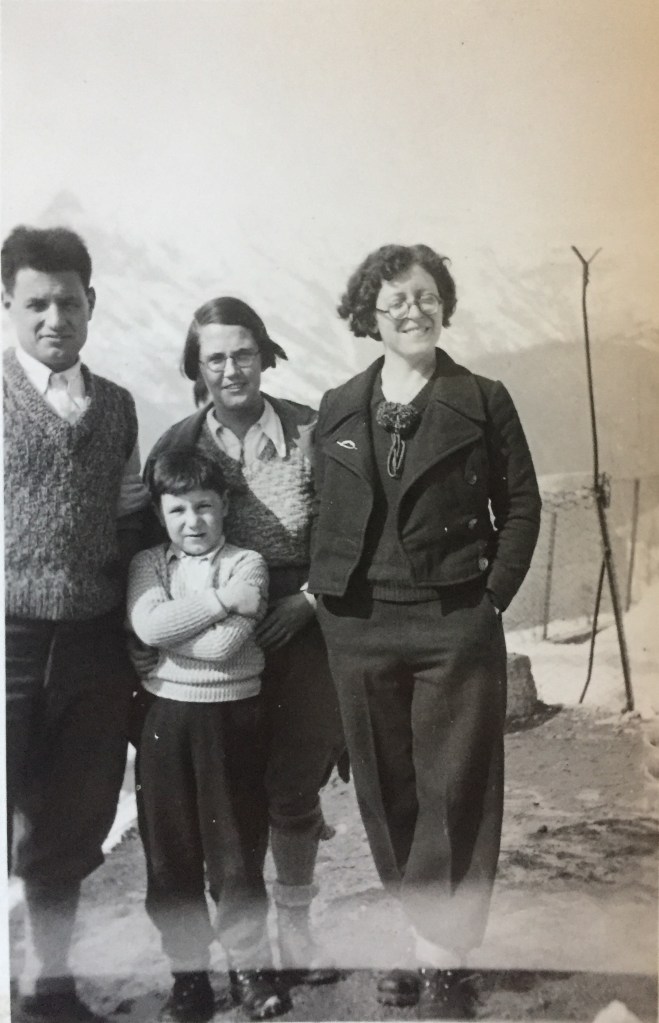 Giovanna Boccalini Barcellona (2°) e suo figlio Giacomo Barcellona posano assieme al cognato Calogero Barcellona (1°) e alla moglie di lui, Elia Marigliani (3°). Gli scarponi indossati da tutti quanti ci fanno capire che siamo nel bel mezzo di una gita.