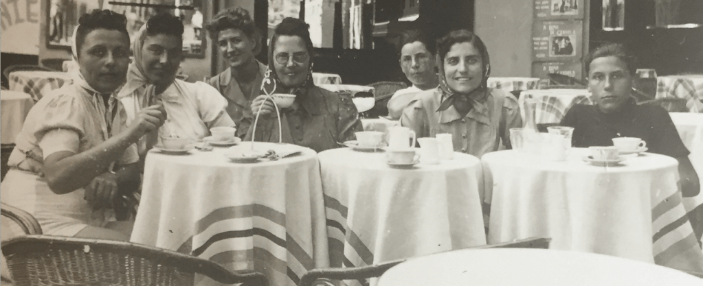 Presupponendo che sia stata scattata poco dopo l’altra, in questa fotografia l’arrivo di sua madre Giovanna (4°) ringalluzzisce ben più di un robusto caffè Giacomo Barcellona (5°), dietro ad una sorridente zia Rosetta (6°) …