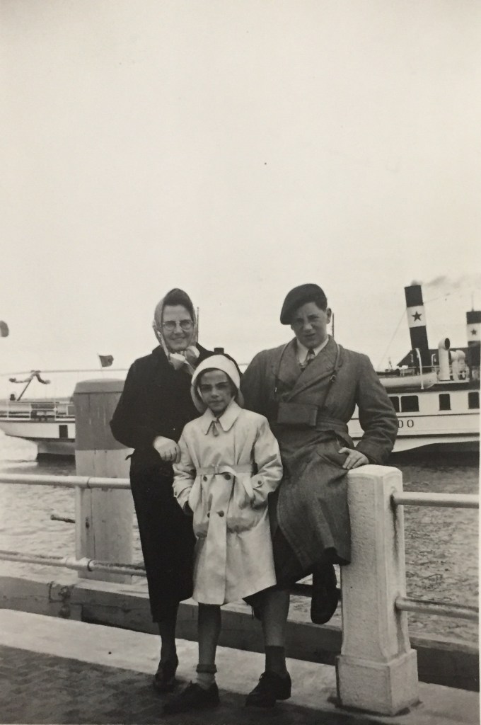 Giovanna Boccalini Barcellona con i figli Grazia e Giacomo posano, pesantemente infagottati, sulle sponde del Lago di Garda.