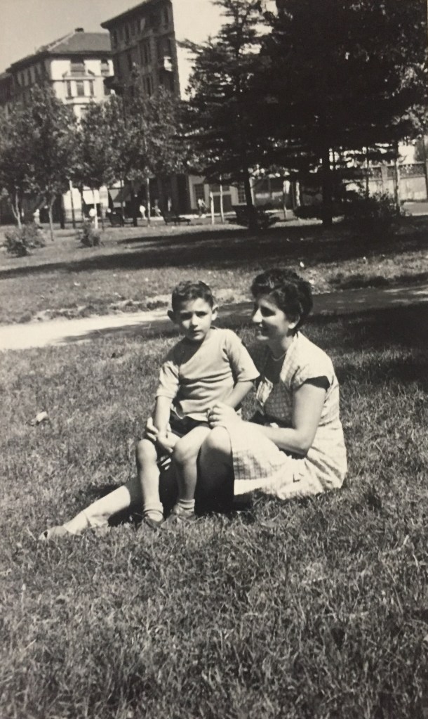 Rosetta Boccalini Gilardi col figlio Paolo (n. 1949), nel parco di Piazzale Martini.