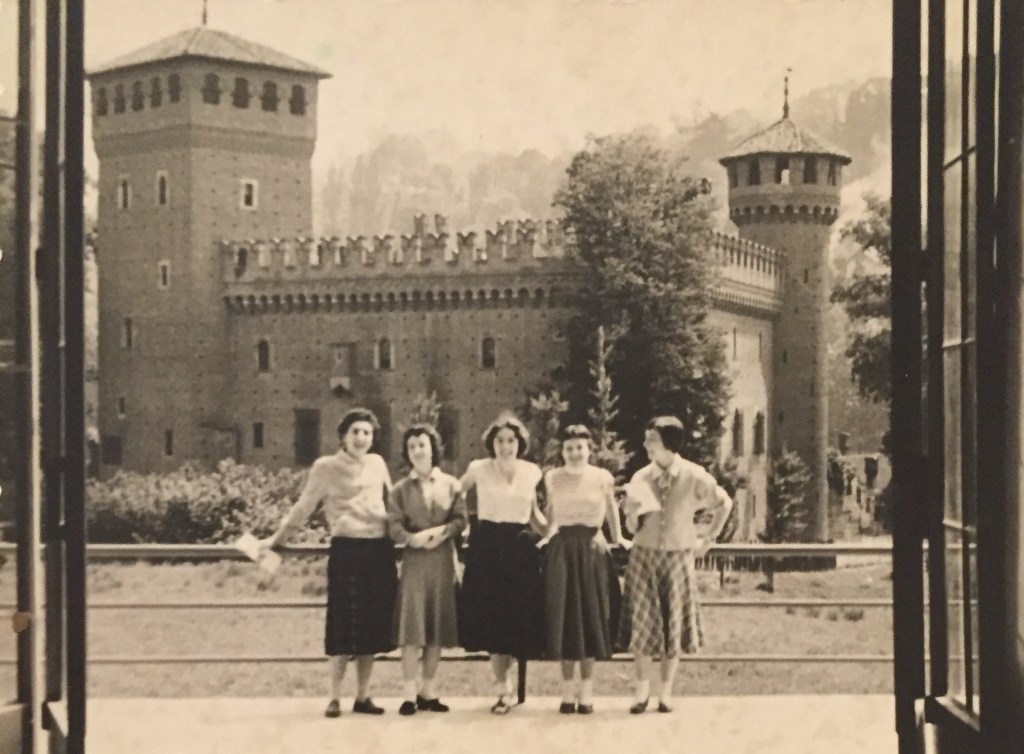 Gioia Mottino posa con altre 4 amiche, mentre visita Torino in occasione della Mostra dello Sport.