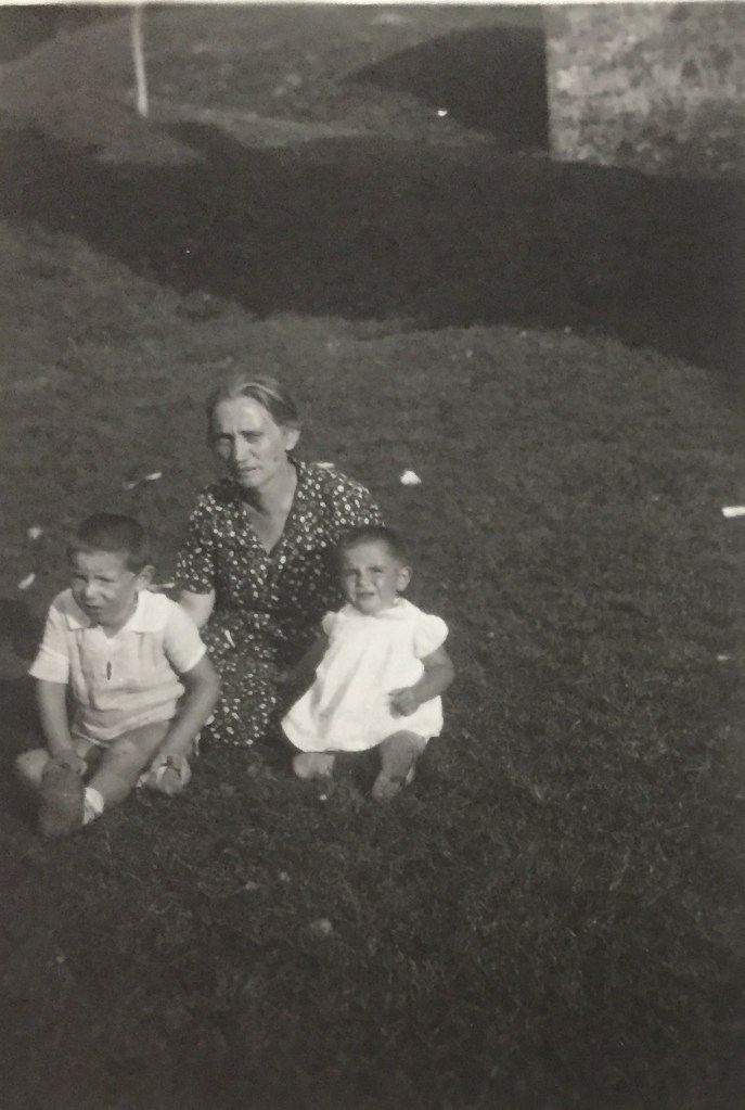 Antonietta Salvarani Boccalini coi due nipotini figli di sua figlia Giovanna, cioè Giacomo “Popi” (4 anni) e Grazia (1 anno e mezzo).