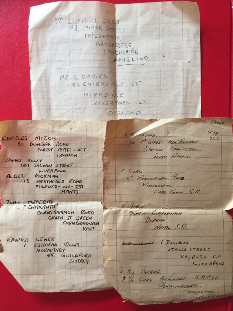 mi lasciavano … […] su un foglio di carta, il loro nome, cognome, l’indirizzo dell’Inghilterra. E io li ho, questi foglietti, li ho, ma li ho a casa