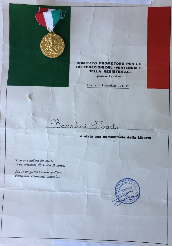 Nel ventesimo anniversario della Liberazione Marta fu premiata con una medaglia commemorativa :