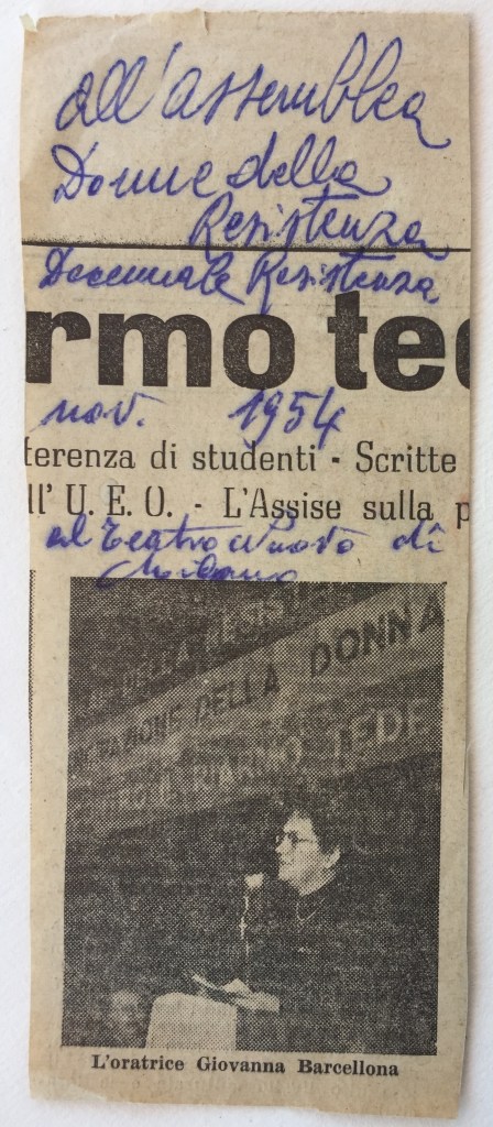 L’attività più importante di Giovanna, tuttavia, furono i Gruppi di Difesa della Donna, che co-fondò assieme ad altre donne a Milano: fu proprio come rappresentante dei GdD che Giovanna partecipò alle riunioni del CLNAI lombardo. Ma proprio su questo aspetto dell’attività resistenziale di Giovanna Alice Vergnaghi sta preparando un contributo, che vedrà fra poco la luce …