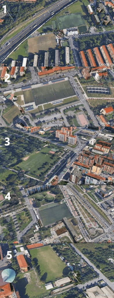 Se è vero che l’indicazione di Quarto Oggiaro risulta fondamentale per circoscrivere le ricerche, è altrettanto vero che quel territorio, per quanto limitato, ha ospitato storicamente e fino ai giorni nostri una piccola galassia di squadre, anche storiche, e di campi: ci troviamo quindi in un contesto urbano ad alta intensità calcistica locale, che ci costringe ad aprire un nuovo livello di ricerca che, per quanto circoscritta, lascia aperto il campo a più soluzioni. Una tale presenza locale di campi di calcio oggi, in un ambito geografico così ristretto, lascia sperare che il campo del 1933 che stiamo cercando corrisponda ad uno di essi e che non sia sparito sotto nuove costruzioni nel dopoguerra: ciò comporterebbe il probabile abbandono della ricerca, visto le mappe dell’epoca, nelle ampie zone di campagna allora ancora presenti, non riportano tracciati di alcun campo sportivo, qualcuno sicuramente esistente poiché utilizzato dalle suddette squadre storiche. I campi di calcio oggi esistenti nel quartiere di Quarto Oggiaro e di Vialba sono ubicati come descritto nella mappa della #12 e ripresi singolarmente nella successiva #13. Nell’ordine, dall’alto in basso, troviamo: