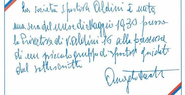 A) La società Aldini fu fondata nel 1930 da Angelo Casati, che ne fu anche il suo primo presidente, presso la privativa di via Aldini al numero 16 (#20, #21). L’Annuario Giuoco del Calcio ci attesta che nel dicembre 1932 la società aveva sede in via Aldini 20.