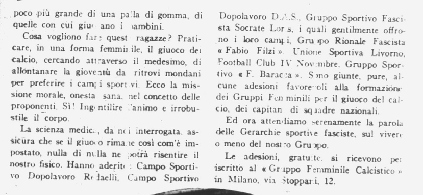 Fonte: Il Calcio Illustrato, 10 maggio 1933, p. 15 (da: @calciatrici1933 , Twitter).