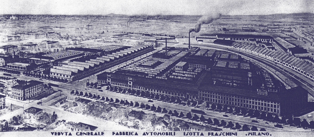Dopo aver costruito alcune autovetture leggere montando motori di altre marche, nel 1903 l’azienda produsse la prima automobile dotata di un motore, di 24 HP, fabbricato nello stabilimento di piazza Zavattari (in realtà l’ingresso era al numero 79 di via Monterosa, da cui il nome dell’ultimo modello prodotto nel 1949). Prima azienda al mondo a montare i freni sulle ruote anteriori, l’Isotta Fraschini costruì modelli da competizione di successo e sviluppò importanti collaborazioni internazionali con aziende francesi e tedesche, giungendo addirittura ad un passo da un grande accordo con l’americana Ford, che prevedeva la costruzione di un nuovo grande stabilimento. L’accordo però naufragò, pare dopo un viaggio di Agnelli a Roma …