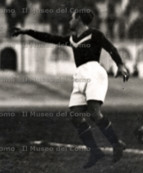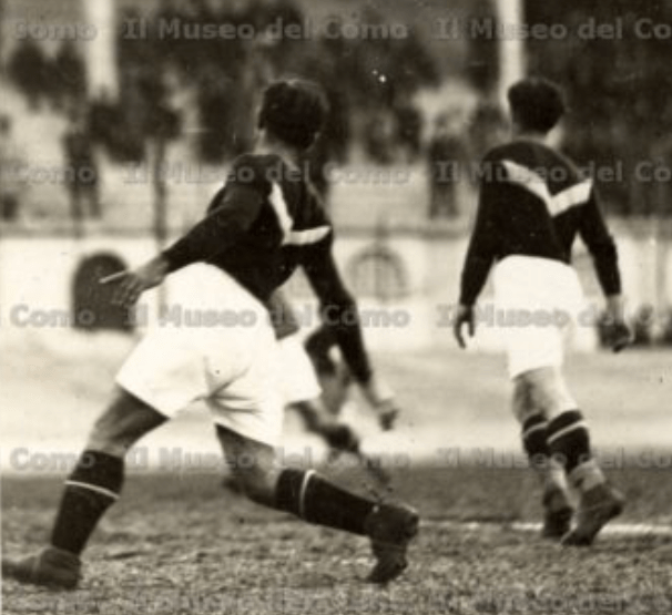 Come si può dedurre dal tabellino riprodotto in #10, i colori sociali risultano essere il bianco e il verde, anche se in altri casi sono indicati il bianco e il blu, colori questi che corrispondono poi ai colori sociali aziendali. Alcune rare immagini provenienti dal sito del Museo del Como (#11 e #12) ci mostrano come nel 1930 la maglia si presentasse completamente scura (ragionevolmente, il colore sarà stato un verde scuro), con una “V” bianca molto schiacciata sia sul fronte che sul retro. Nella cronaca della partita i milanesi vengono definiti significativamente bianco-verdi.