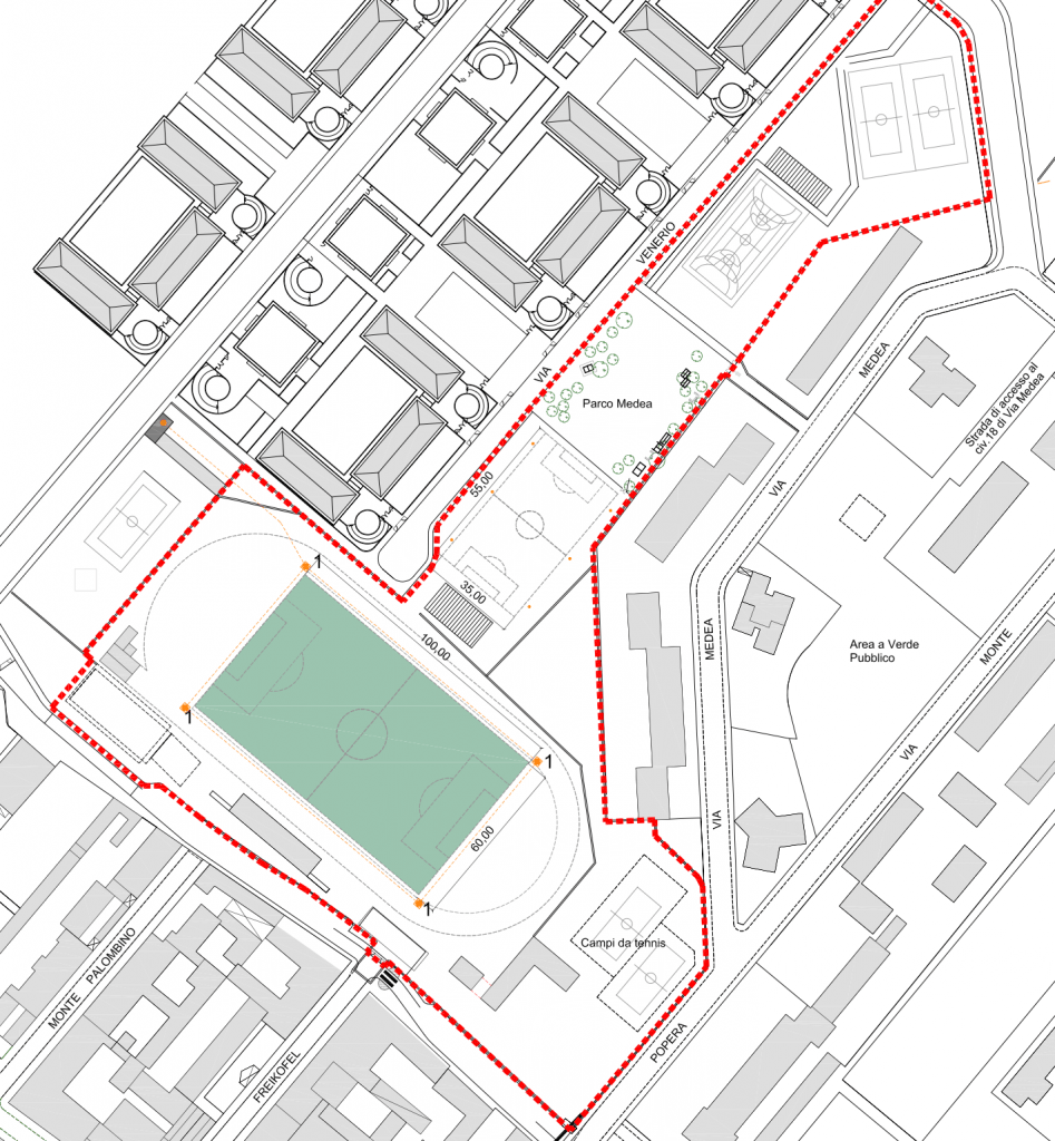 Le Ferriere sono sparite ed il campo ne è rimasta quasi sola testimonianza (c’è anche il Centro Studi, destinato ad auditorium, forse) Google Earth
