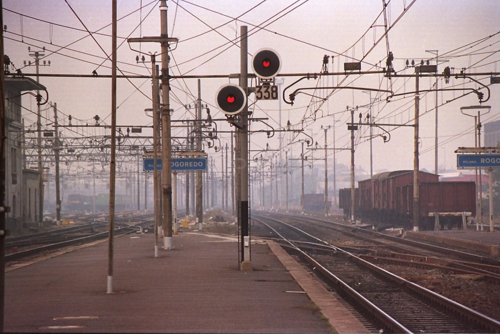 In primo piano gli scambi verso sinistra, sulla linea per Lodi-Piacenza.
