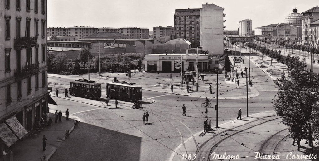 Nell’estate del 1937 il poeta dialettale Delio Tessa descrive così (#57), sulle colonne de L’Ambrosiano, Piazzale Corvetto, e lo scambio fra il tram 22 e il tram 32: