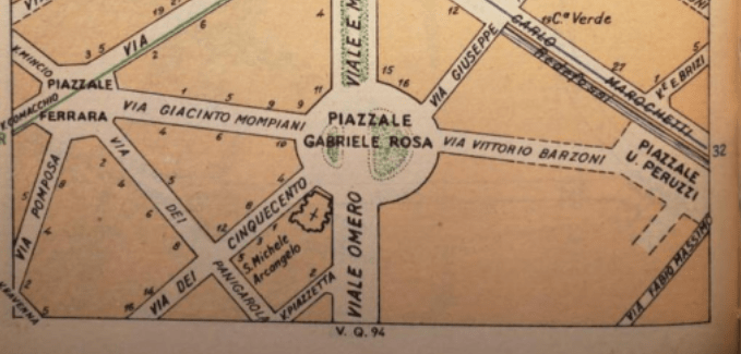 Dunque Ninì Zanetti abitava al Quartiere Regina, in via Pomposa 8. La denominazione delle strade del quartiere (#61) aveva attinto parecchio alle località della zona orientale e costiera dell’Emilia-Romagna (piazza Ferrara, via Ravenna, via Polesine…) alternandola con altre fonti di svariata origine (piazzale Gabrio Rosa, via dei Cinquecento, via Panigarola…).