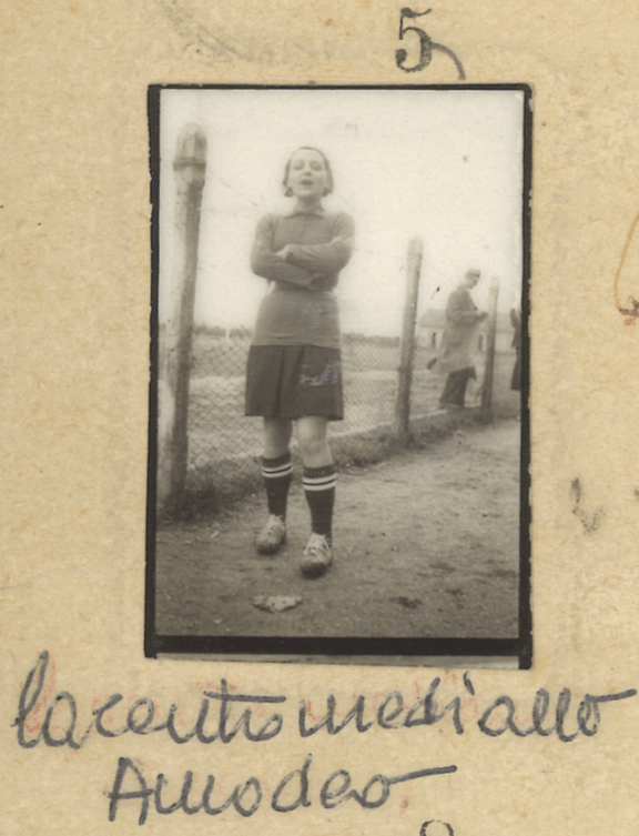 La giocatrice immortalata nel quinto scatto è la centromediano Amodeo, ossia Brunilde Amodeo, che effettivamente giocava al centro della linea di centrocampo delle granata.