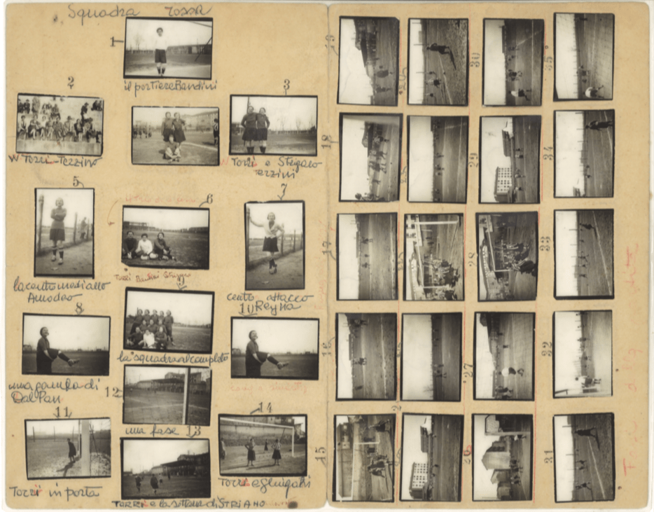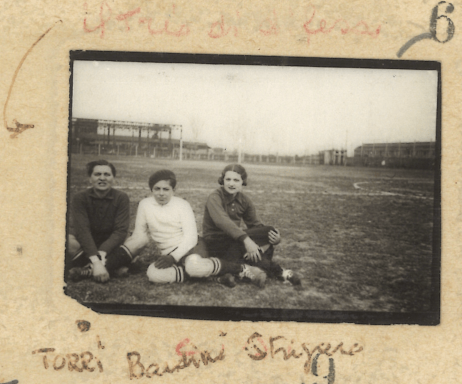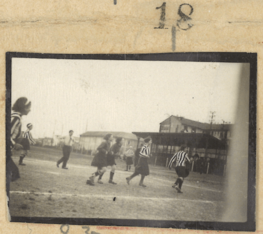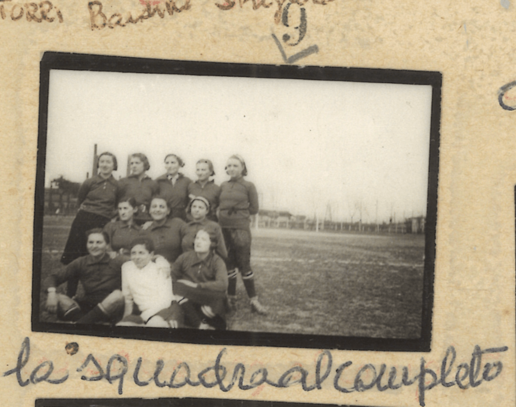 Grazie alla straordinaria generosità della figlia Sandra Origo, nell’aprile 2023 è stato messo a disposizione per lo studio un interessantissimo manufatto appartenuto alla calciatrice Wanda Torri (1908-1987). Si tratta di un collage fotografico, plastificato, che ci riporta sul campo dove, come detto nella copertina esterna, domenica 26 marzo 1933 si svolse un match di footb-ball interno al Gruppo Femminile Calcistico (GFC).