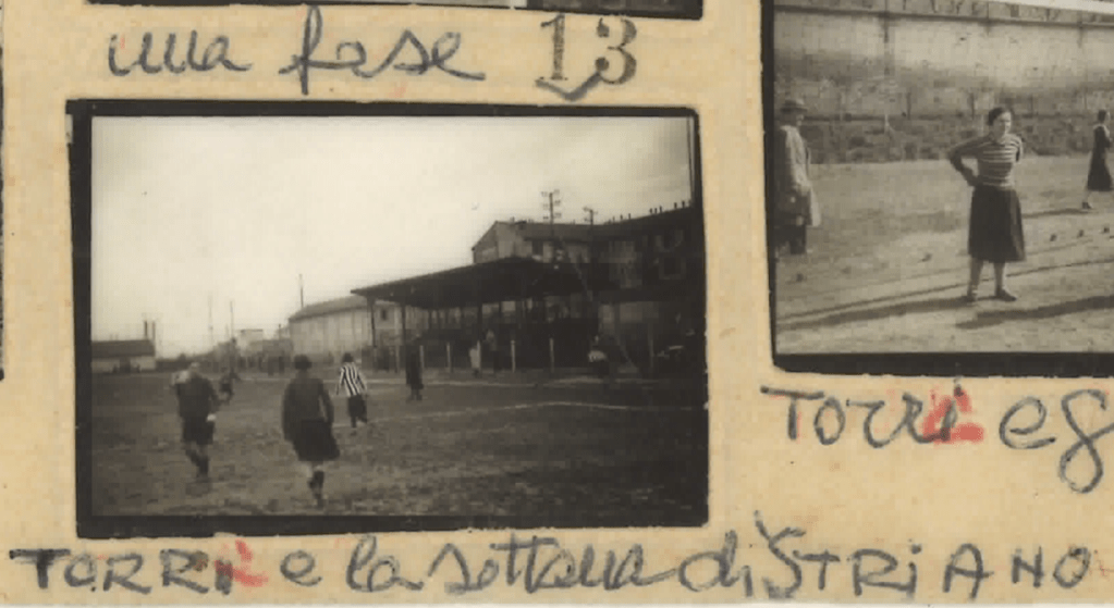 Nel tredicesimo scatto vediamo sul campo Redaelli Torri e la sottana di Striano (cioè Strigaro): forse un modo per dire che le due giocatrici in prima piano sono Wanda Torri e Losanna Strigaro, quest’ultima però ripresa di spalle, e quindi non riconoscibile per il volto.
