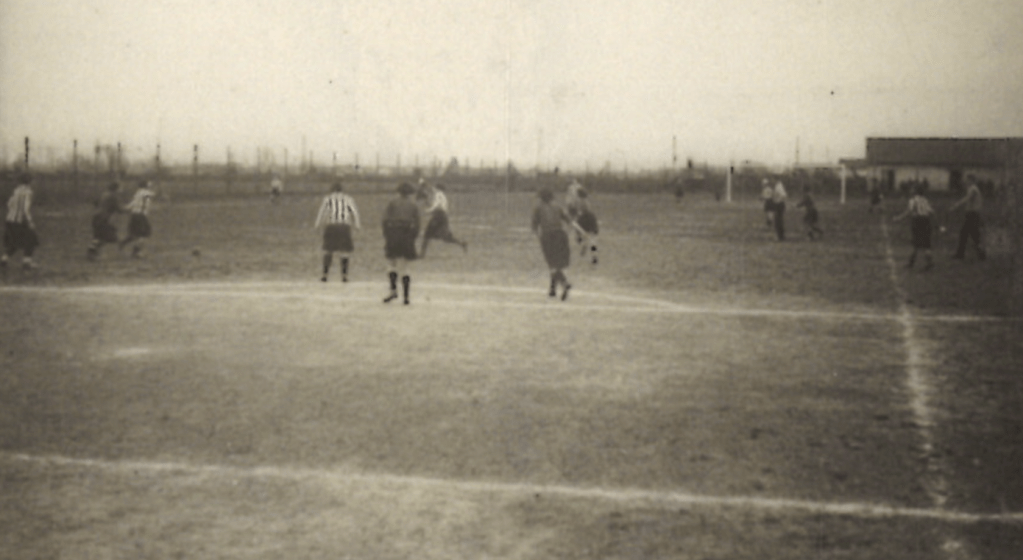 Un’azione di gioco dal campo Redaelli, alle spalle di Bandini, e quindi della difesa granata. Da notare il terrapieno sulla sinistra: ci troviamo sul lato nord del campo.