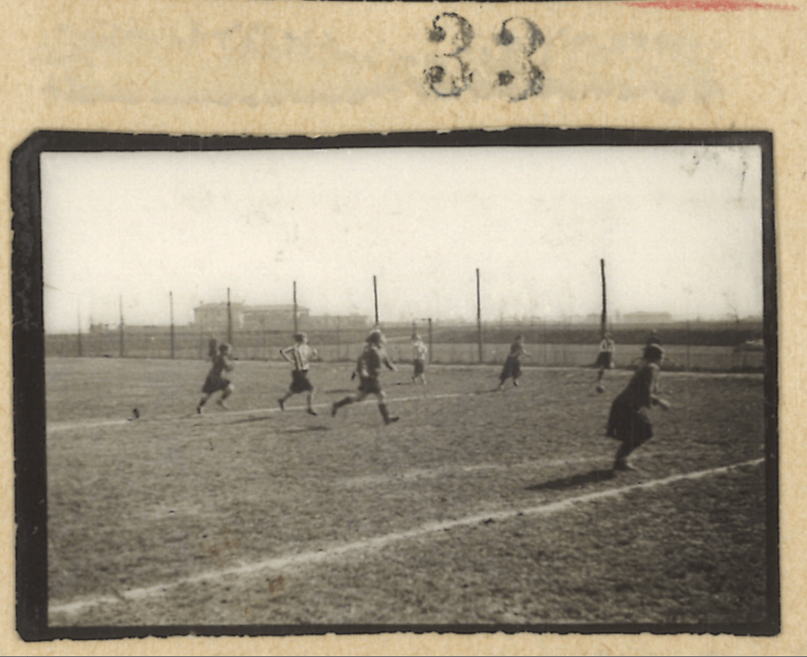 L’undicesimo scatto è significativo, perché ci testimonia una Wanda Torri ancora in porta, prima cioè che venisse sostituita da Bandini fra i pali: altre fotografie infatti ci testimoniano come Wanda avesse giocato in questo ruolo il 19 aprile 1933. L’analisi dello sfondo ci fa ipotizzare che il campo sia il Redaelli.