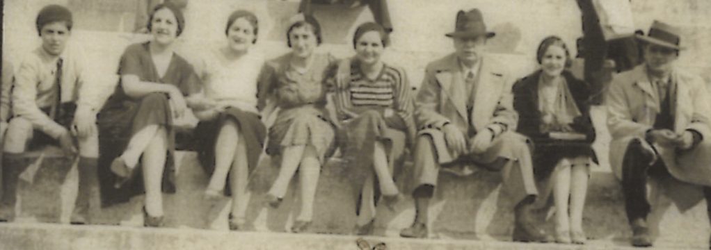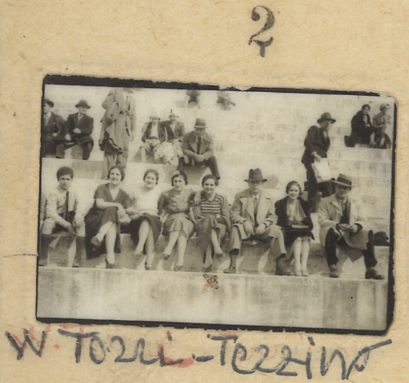 Un ingrandimento più dettagliato del gruppo centrale ci permette di ipotizzare queste identificazioni: un ragazzino che potrebbe anche essere Bandini; le sorelle Amodeo (Wanda e Brunilde, o viceversa); Frida Marchi; Wanda Torri; un uomo (Ugo Cardosi?); Anny Botta (?); un uomo.