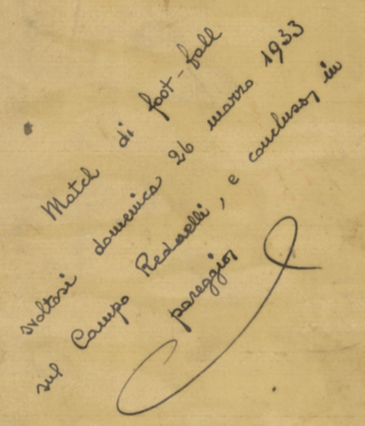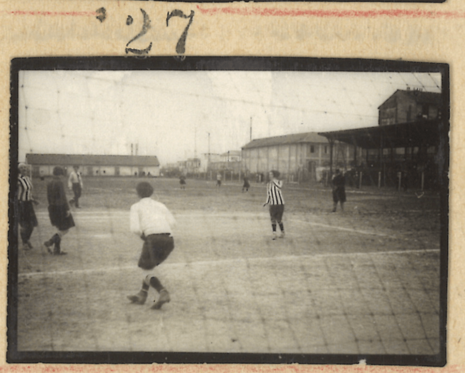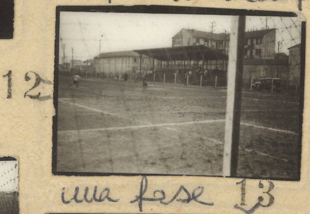 La prima precisazione da fare è quella riguardante il campo da calcio che vediamo nelle immagini: in molti casi si tratta effettivamente del campo Redaelli di via Rogoredo, dove sappiamo che il GFC giocò anche domenica 23 aprile e domenica 28 maggio. Tuttavia, grazie al confronto con altre fotografie superstiti, capiamo come alcuni scatti siano da riferire alla partita precedente, ossia quella del 19 marzo 1933, giocata sul campo DAS di via Tertulliano.