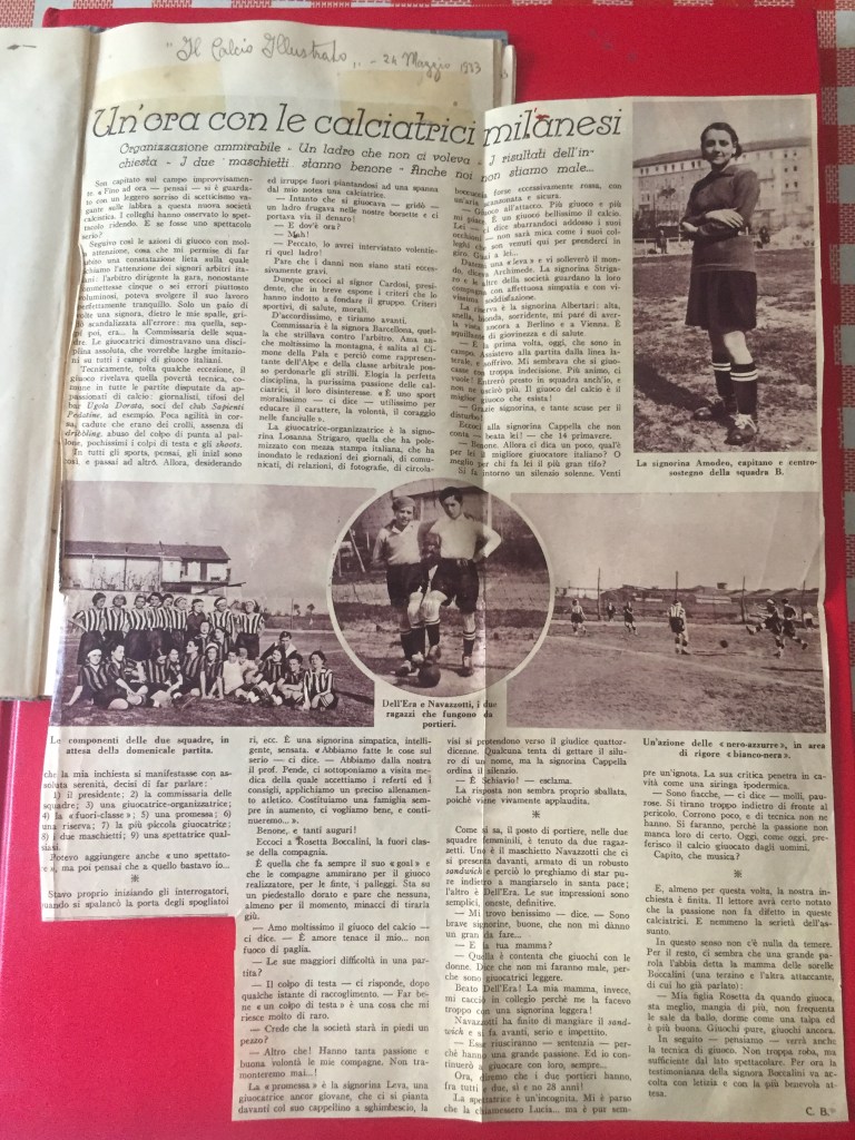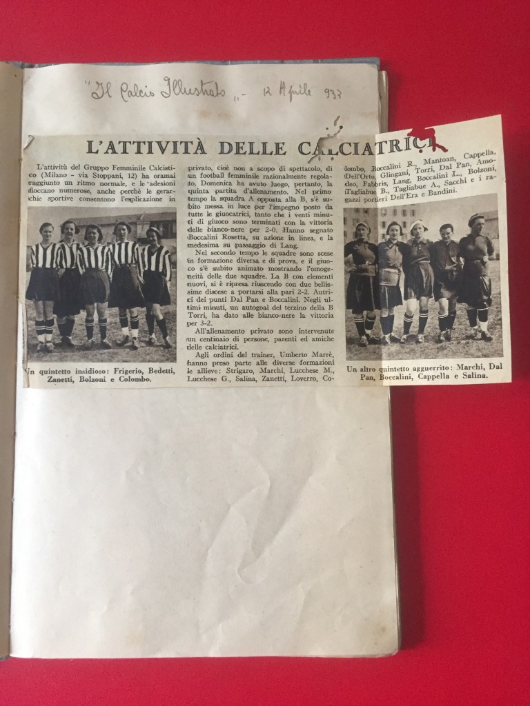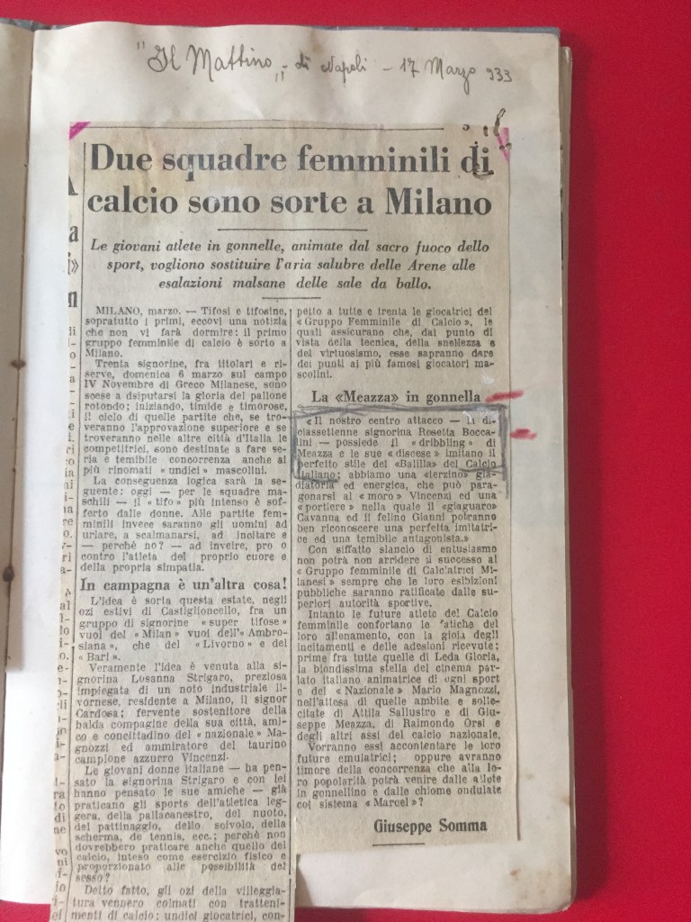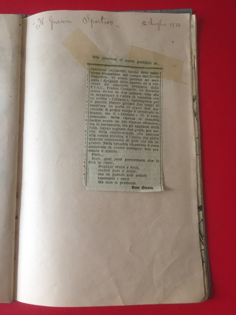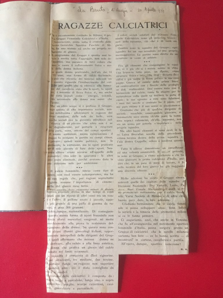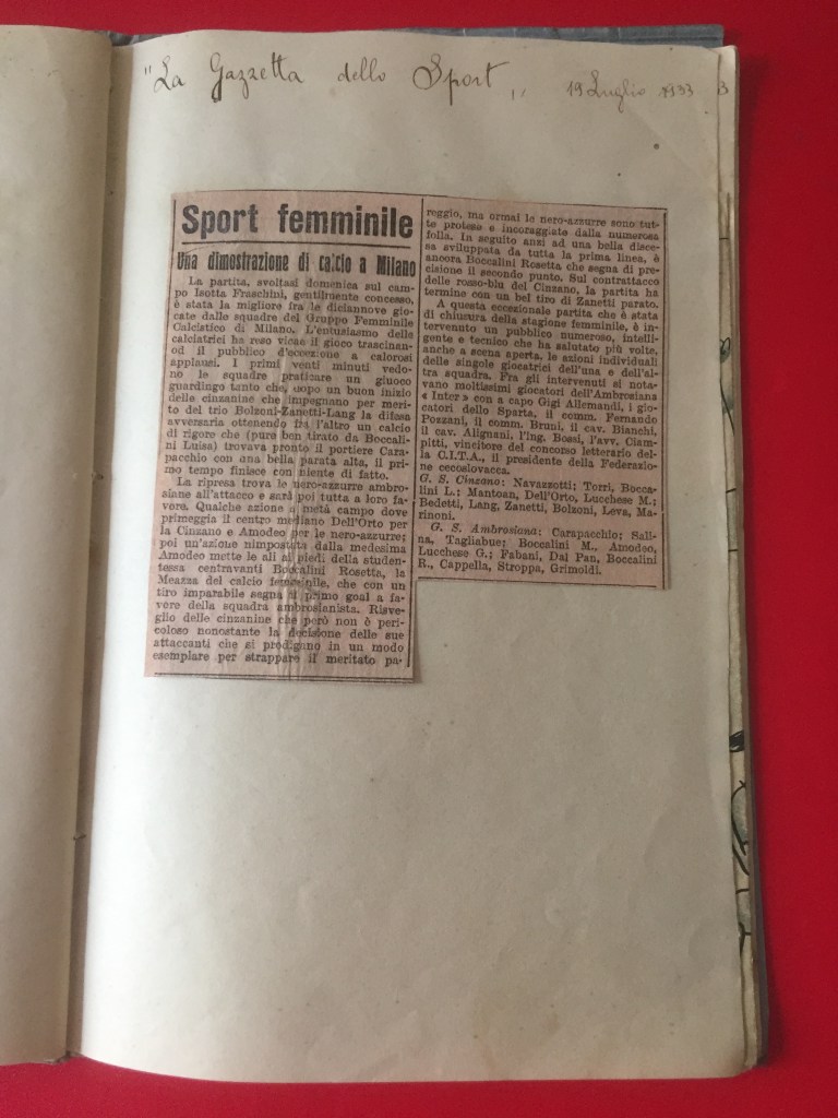 Nell’estate 2021 è stato ritrovato, all’interno dell’Archivio privato Marta Boccalini, un quaderno di 34 pagine, appartenente alla sorella Rosetta, intitolato Calcio. Si tratta della raccolta dei ritagli di giornale che nel 1933 la stampa nazionale dedicò al Gruppo Femminile Calcistico.