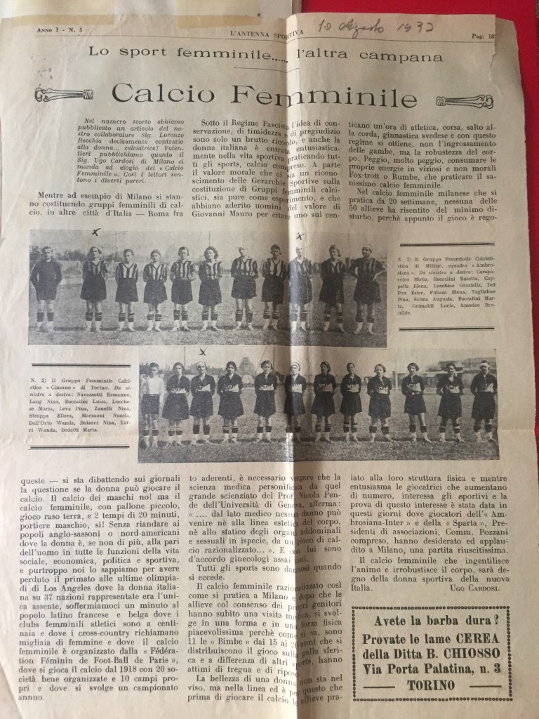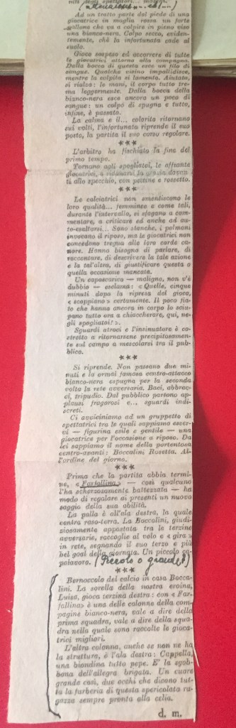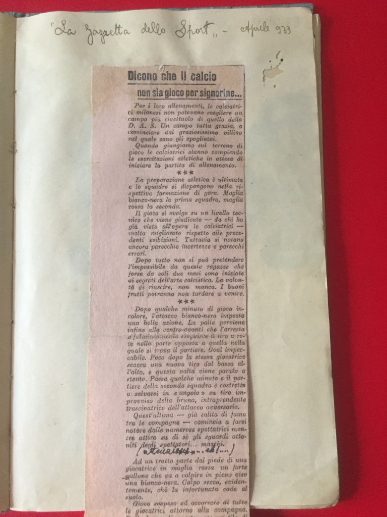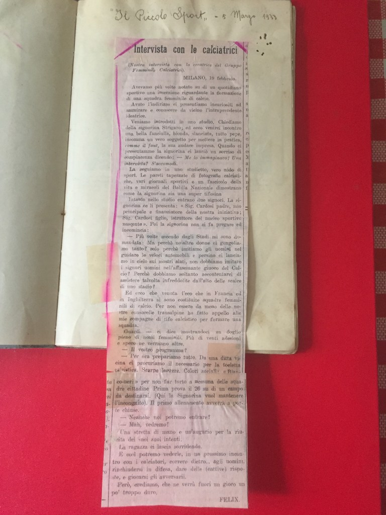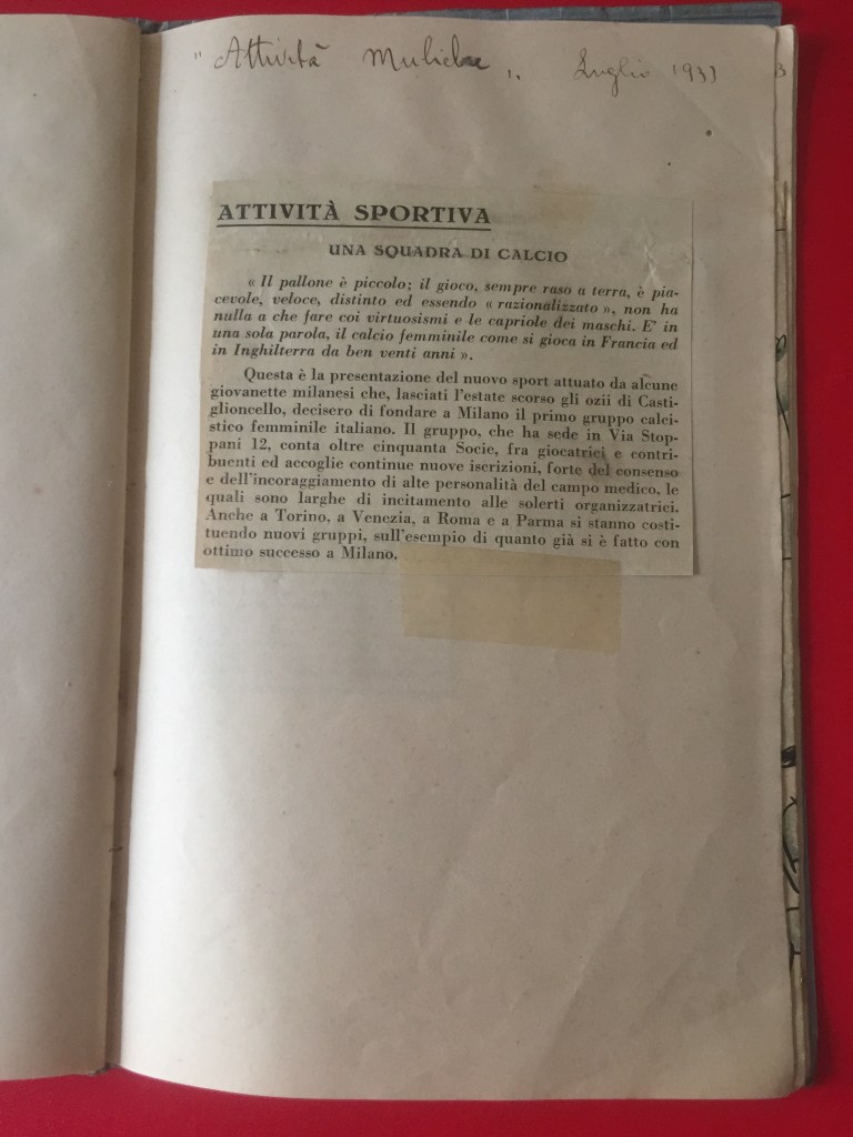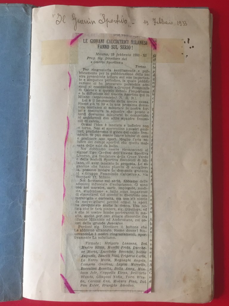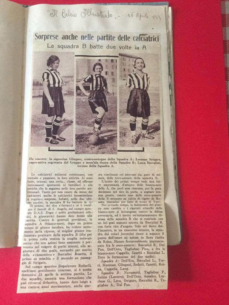Nell’estate 2021 è stato ritrovato, all’interno dell’Archivio privato Marta Boccalini, un quaderno di 34 pagine, appartenente alla sorella Rosetta, intitolato Calcio. Si tratta della raccolta dei ritagli di giornale che nel 1933 la stampa nazionale dedicò al Gruppo Femminile Calcistico.