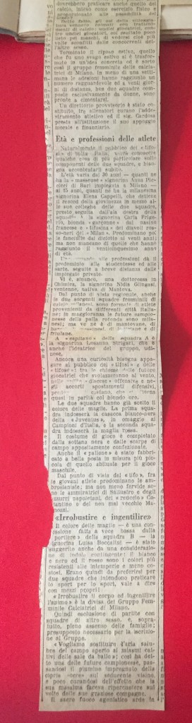 Con la ripresa delle attività dopo le vacanze estive, le calciatrici subiranno il boicottaggio da parte del regime e del CONI. Non a caso, anche il quaderno finisce di essere scritto, e le pagine da 24 in poi sono bianche: c’è giusto il tempo per due ultimi ritagli. Il primo, appoggiato a f. 24r, è un ritaglio datato a mano 8 ottobre 1933, di cui però non è per ora possibile identificare la testata