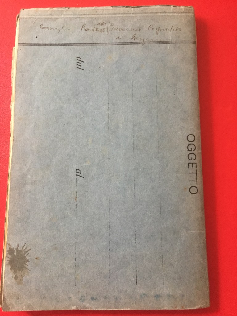 Seguono molte pagine bianche. Sull’esterno del quaderno, si può leggere un’annotazione manoscritta, “Consiglio Provinciale dell’Economia Corporativa di” (illegibile, forse “Bergamo”): visto l’aggettivo “corporativo”, può risalire al massimo al 1943.