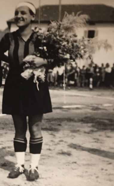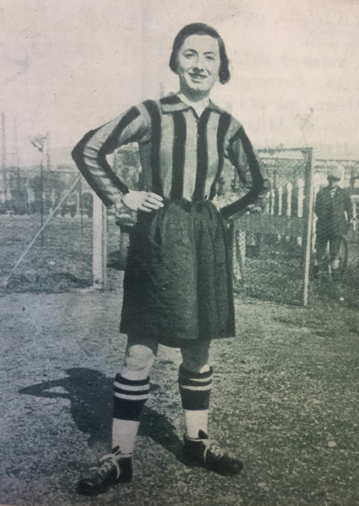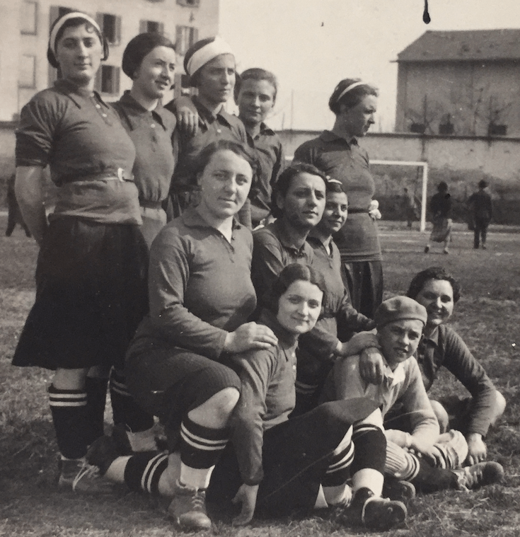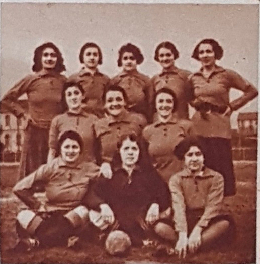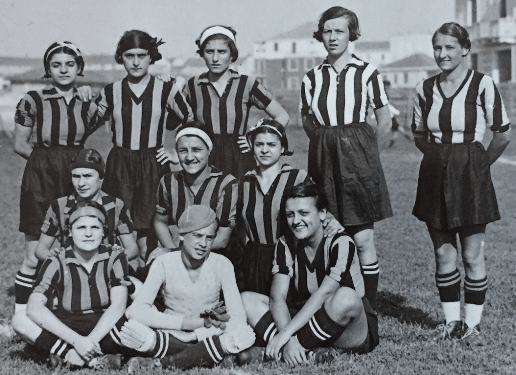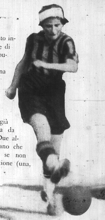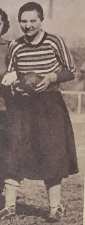Impossibile capire che maglia indossasse, nel maggio 1933 (è in mezzo alle giocatrici nerazzurre).