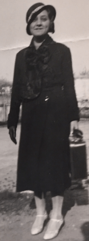In tutte le foto dell’aprile/maggio 1933 indossa una camicia bianca (di cui si intravede il colletto) ed una maglia di colore chiaro, a maniche lunghe: in testa, un basco di colore chiaro.