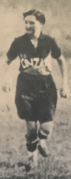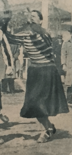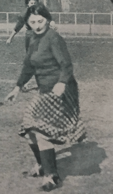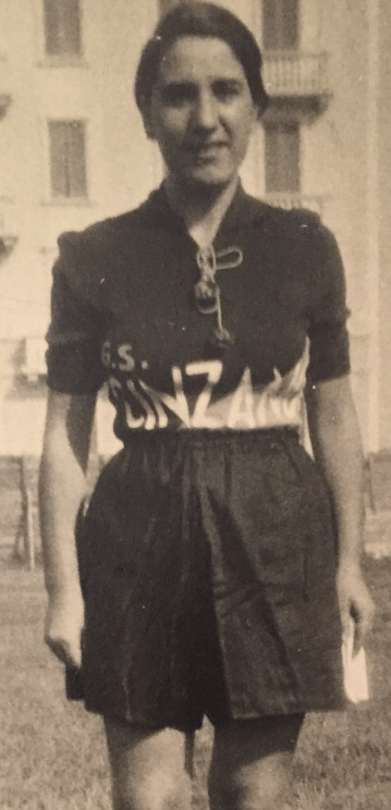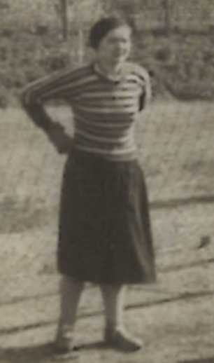Nel giugno 1933, gioca con il GS Cinzano. Indossa una fascia bianca per capelli.