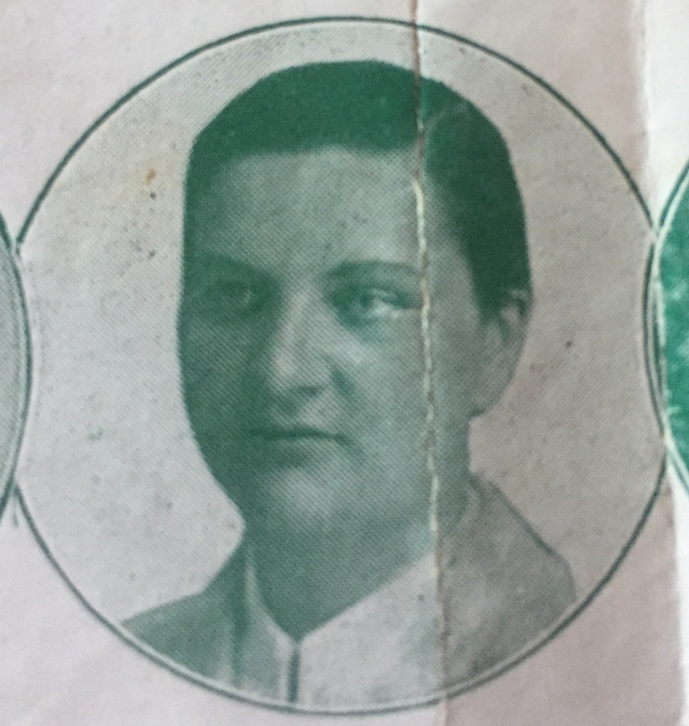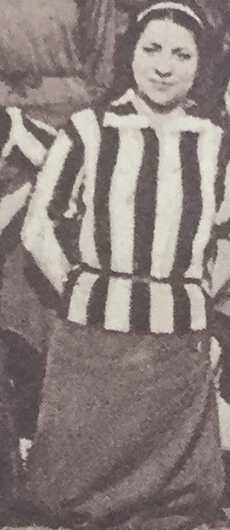Nel settembre/ottobre 1933 indossa una maglietta nerazzurra; dalla posizione nella foto, si può dedurre che fosse una centrocampista (mediano laterale). Sguardo severo, si distingue per il cappellino (?) che indossa in testa.
