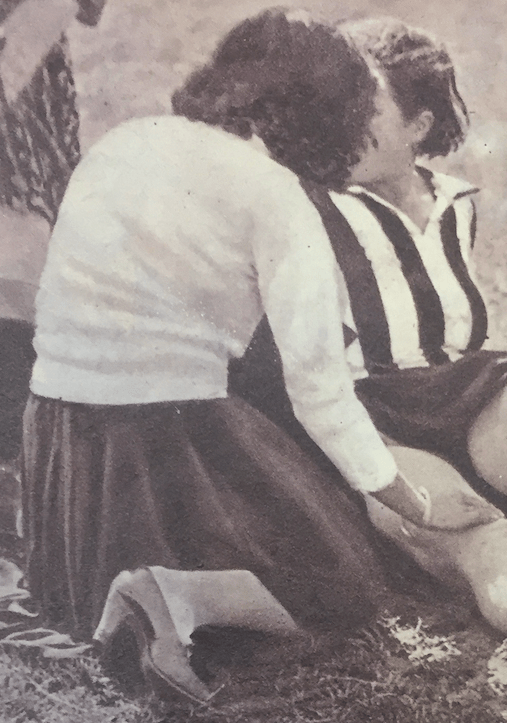 In realtà, all’interno di una gallery di foto in borghese delle calciatrici pubblicata nel giugno 1933 ma risalente allo stadio di qualche mese prima, sono ritratte entrambe le sorelle Amodeo.