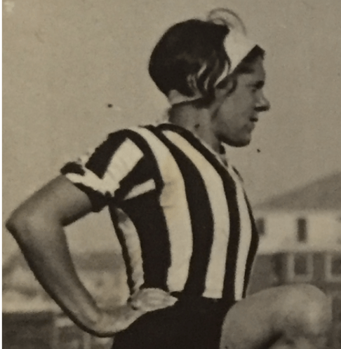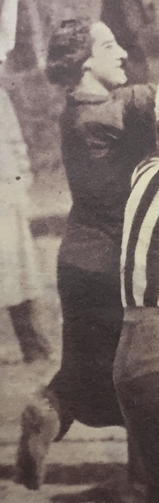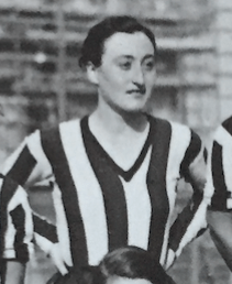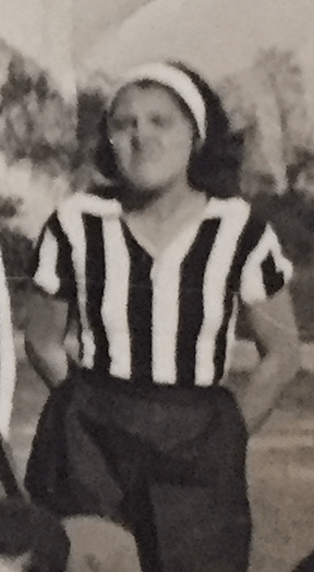 Nel maggio 1933 giocava per le bianconere; alta fronte, fascia chiara.