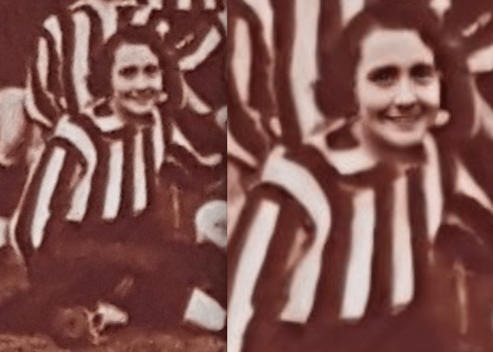In una partita del marzo 1933 giocava con le bianconere. Capelli corti, calze corte chiare.