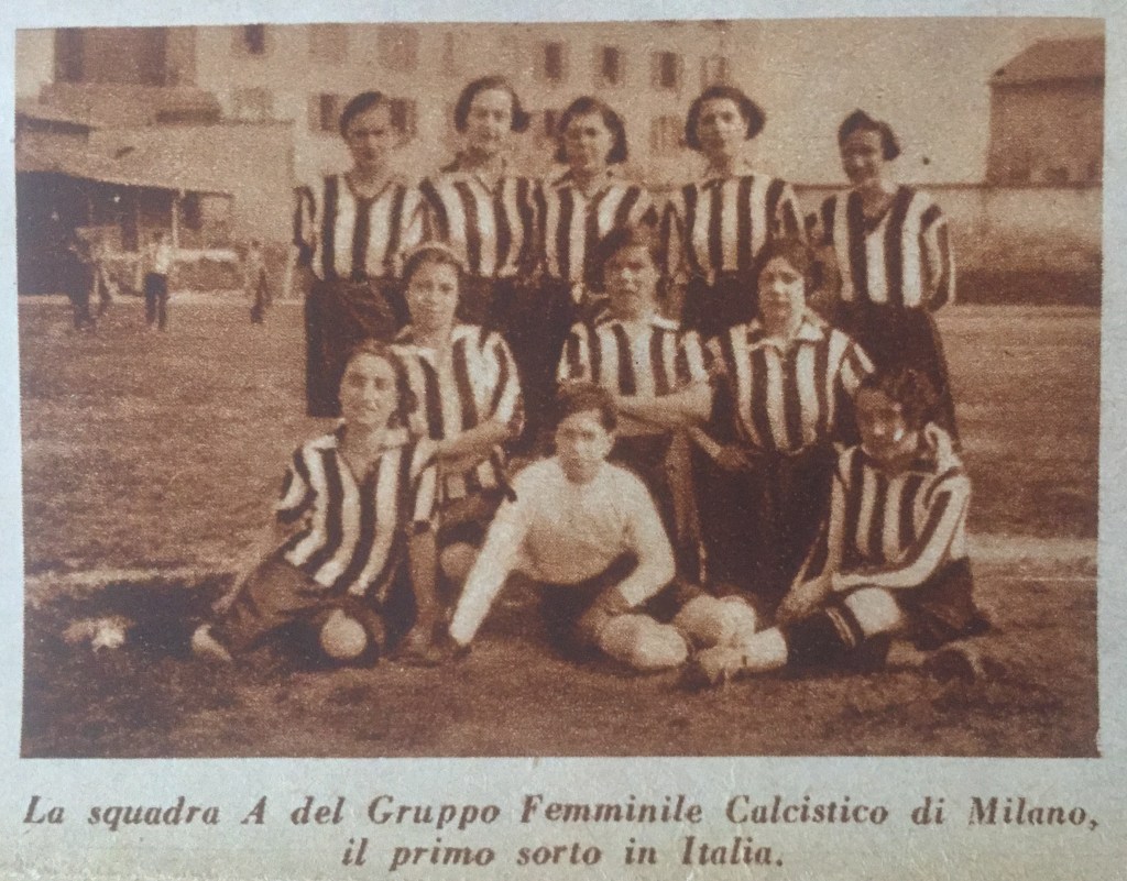 La foto è stata pubblicata su Il Secolo Illustrato del 25 marzo 1933, e fa riferimento (come l’articolo) alla prima partita giocata dalle ragazze del GFC, quella di domenica 19 marzo 1933 presso il campo DAS di via Tertulliano.