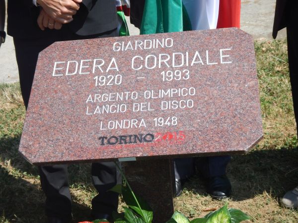 Subito dopo il piazzale Amelia Piccinini, nell’estate del 2015 il Comune di Torino ha pensato di intitolare alla sua compagna di avventura olimpionica a Londra 1948, l’atleta Edera Cordiale Gentile (1920-1993), “argento olimpico | lancio del disco | Londra 1948”, un giardino.