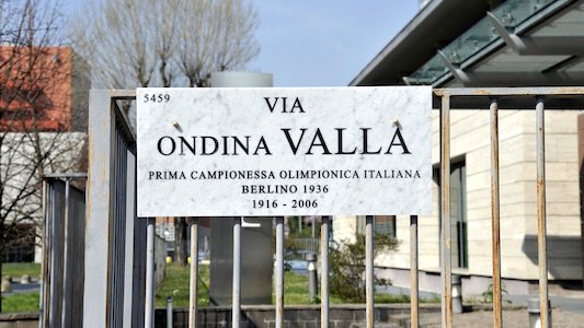Nel marzo 2018 il Comune di Milano ha intitolato una via all’atleta Ondina Valla, “prima campionessa olimpionica italiana | Berlino 1936 | 1916-2006”.