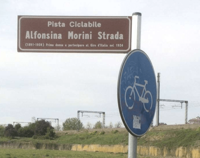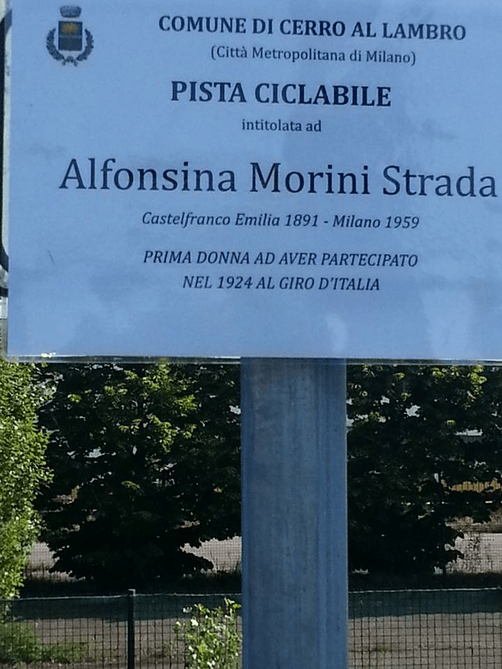 Nel 2017 il Comune di Milano ha intitolato una via alla ciclista Alfonsina Strada (“al secolo Alfonsa Rosa Maria Morini”), “prima donna a partecipare al Giro d’Italia nel 1924 | 1891 – 1959”.