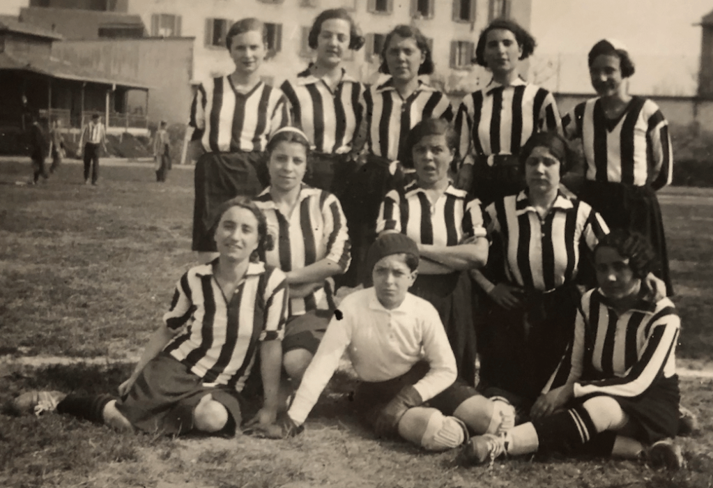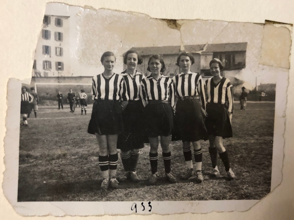Sedute: Ester Dal Pan, Ninì Zanetti e la quinta calciatrice.